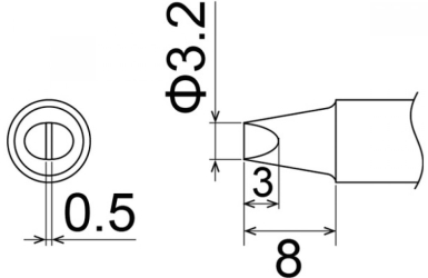 • Главная  —  Каталог оборудования  —  Паяльное оборудование  —  Паяльные жала / насадки и принадлежности для паяльников  —  Композитный наконечник Hakko T33-d32 Shape-3.2d
