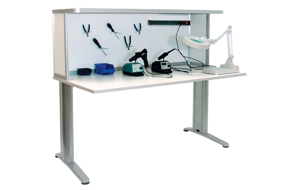 | Стол монтажника радиоаппаратуры с антистатической столешницей AKTAKOM АРМ-4115-ESD Стол монтажника радиоаппаратуры с антистатической столешницей 100x80х131 см. Цвет алюминиевого каркаса - серый (RAL-9006), цвет ДСП - белый. Столешница размером 100х80 см из антистатического меламинированного ДСП толщиной 25 мм. Одна полка 100x50 см над столешницей. Разъемы заземления. Освещение из 2-х люминесцентных светильников по 12 Вт. Перфорированная задняя стенка, набор крючков для крепления инструментов. Два блока розеток. Высота 131 см. |