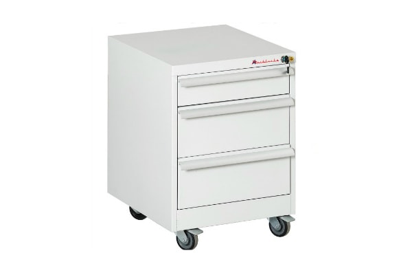 Подкатная стальная тумба в общепромышленном исполнении. Служит для хранения и транспортировки инструментов и мелких деталей. Дополнительный элемент для промышленного стола.